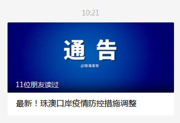 南都记者从澳门特区政府官网获悉,今天(10月18日),珠澳联防联控澳方工作组接珠海方面通知指出,根据当前疫情防控需要,经珠澳联防联控协商一致,自2021年10月19日12时起,经珠澳口岸入境(珠海)人员需持48小时内核酸检测阴性结果证明。