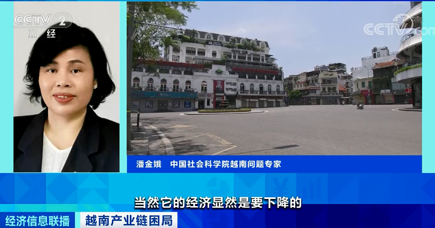 中国社会科学院越南问题专家 潘金娥:7月到9月这三个月,南部工厂几乎全部关停了,在这样的背景下,当然它的经济显然是要下降的,因为越南的外贸依存度达到了200%以上。