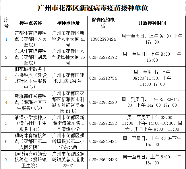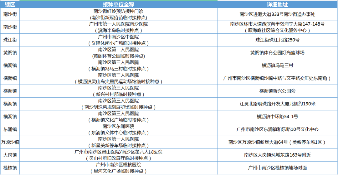 南沙区新冠病毒疫苗接种单位信息一览↓↓