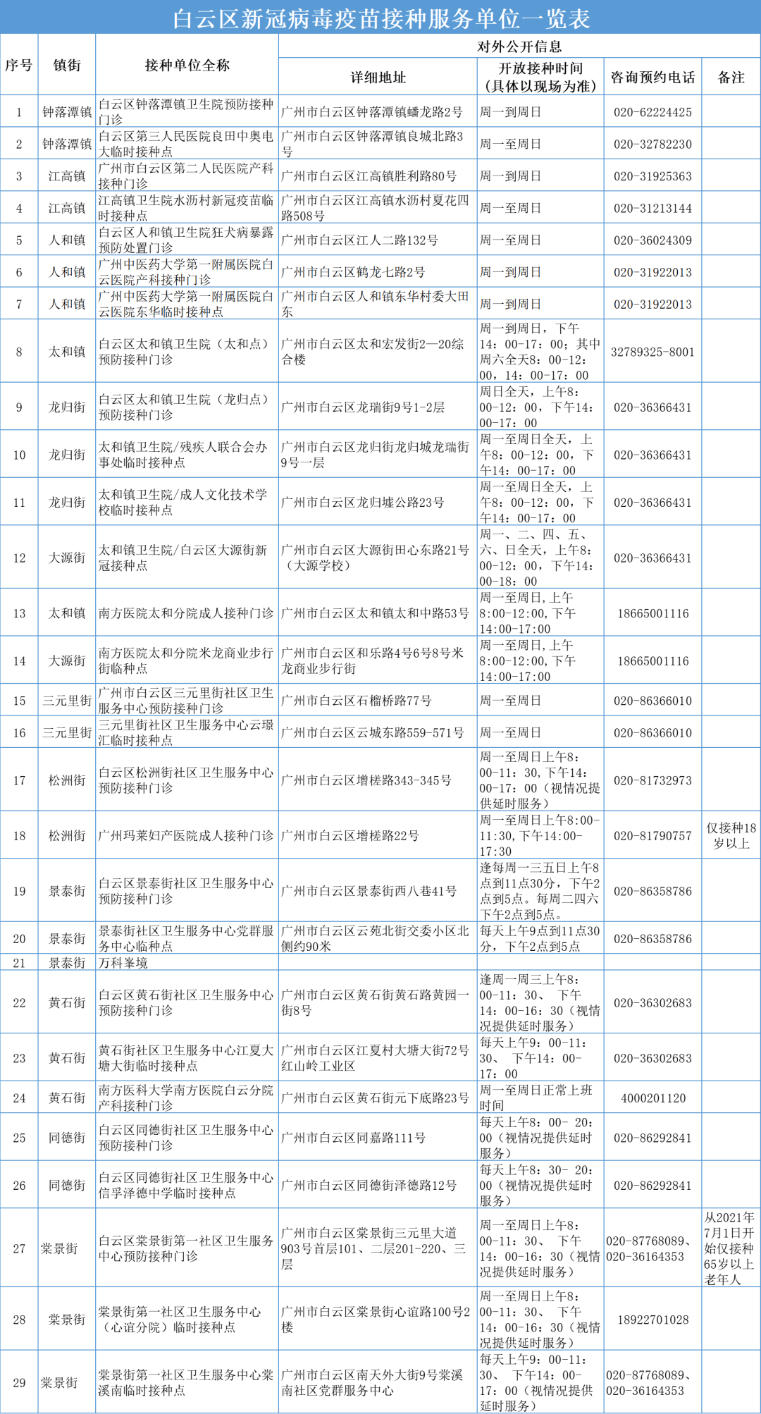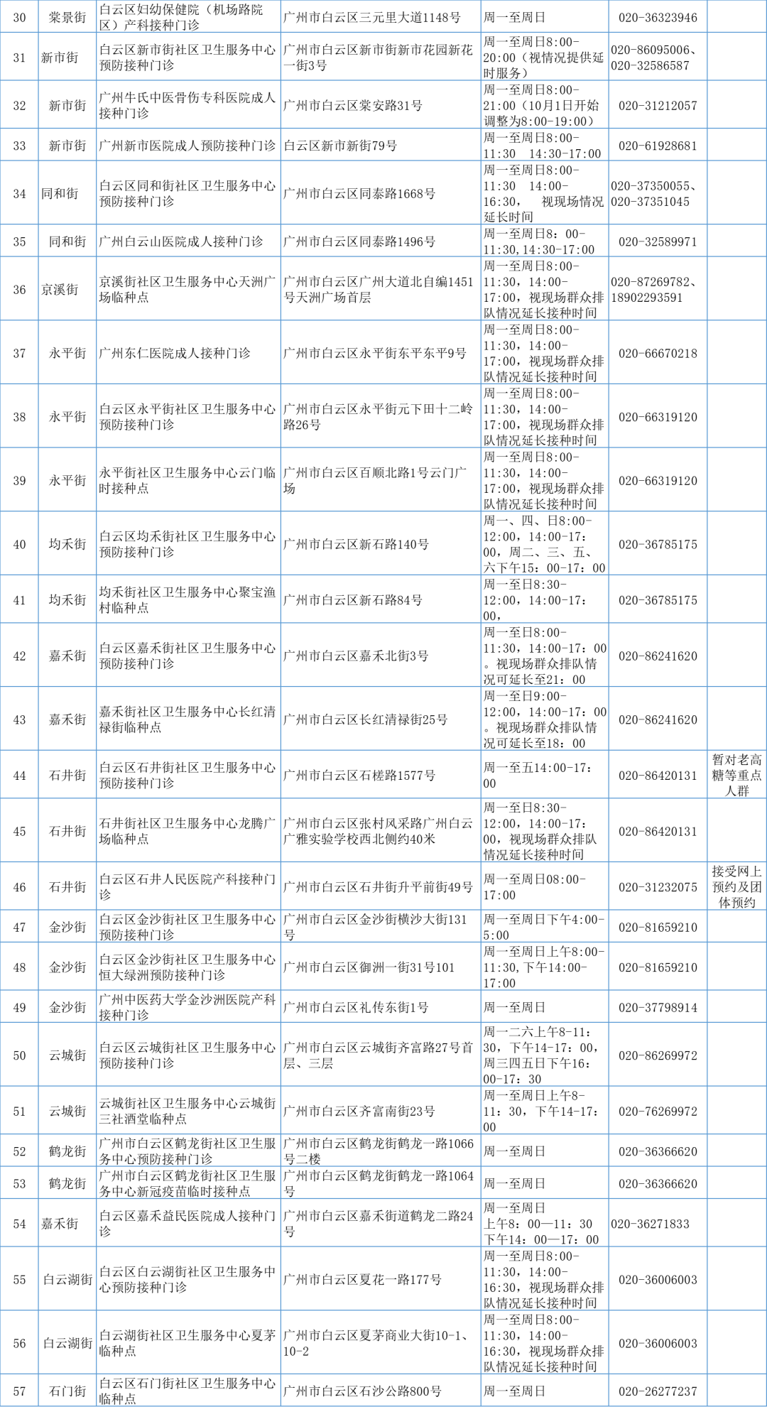 日前,白云区开放了新冠疫苗第三针加强针接种,全区共设57个接种点。