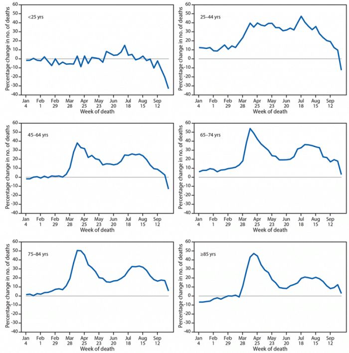 “......归因于COVID-19的超额死亡的估计可能低估了直接归因于COVID-19的实际数字,因为其他原因造成的死亡可能代表了被错误归类的COVID-19相关死亡或大流行病间接造成的死亡,”报告称。“具体来说,2020年循环系统疾病、阿尔茨海默病和痴呆症以及呼吸系统疾病的死亡人数相对于往年有所增加,目前还不清楚这些死亡在多大程度上代表了与COVID-19相关的误分类死亡或与大流行病间接相关的死亡(例如,由于医疗服务获取或利用的中断)。”