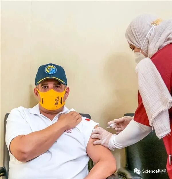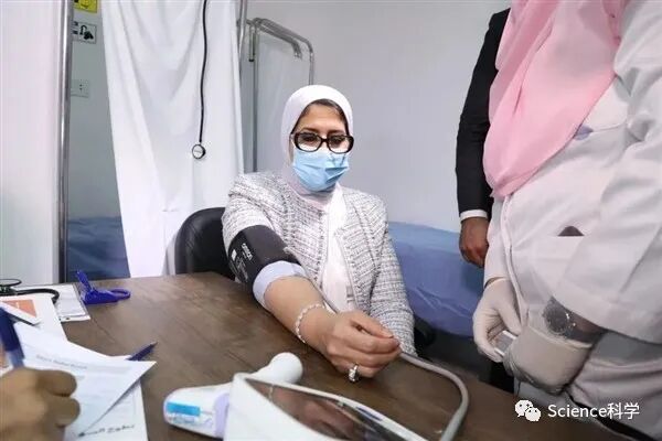 9月28日,埃及卫生与人口部长哈莱作为志愿者来到临床试验现场接种了疫苗。
