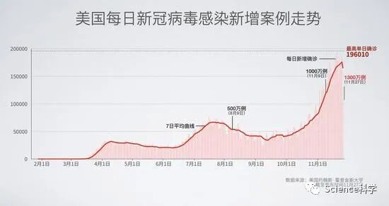 日前说的另一个模型显示,美国的COVID-19病例数可能在两个月内翻倍,达到2000多万确诊病例。如果疾控中心8比1的比例仍然成立,那就意味着届时可能有多达1.6亿美国人得病。公共卫生专家预计,感恩节将助推美国又一次大规模的高峰,预计未来几周数字将进一步飙升。
