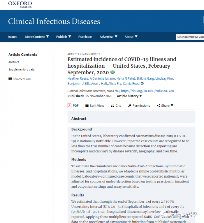 CDC的模型确实明确指出,许多COVID-19病例没有被报告,尤其是无症状和轻症病例。但这项研究还指出,即使是住院的病例也并不总是能通过检测确认。研究人员估计,到9月底,每2.5个住院感染病例中只有1个被正式报告。