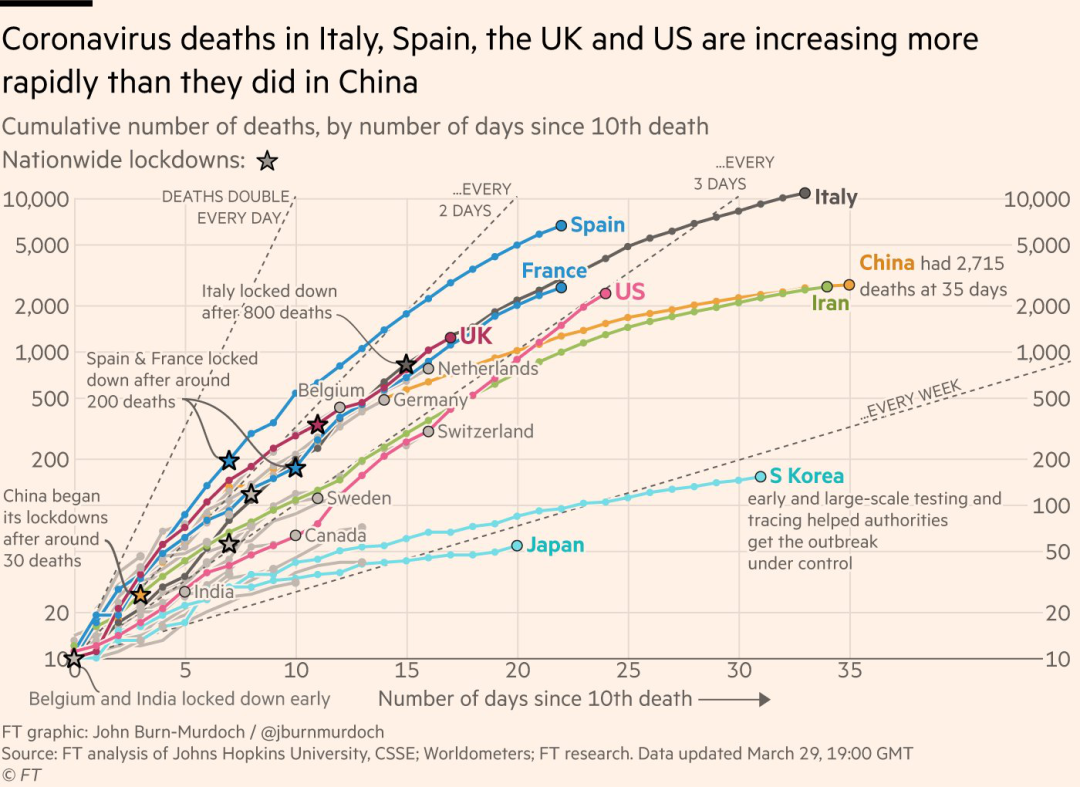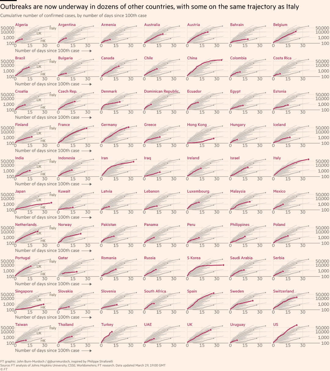 超过25个国家,死亡病例超过10例,截至3月29日,FT