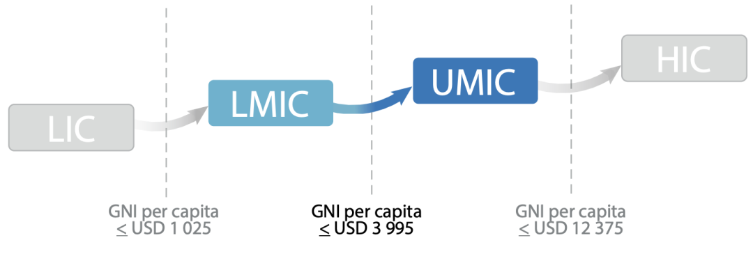 低收入国家(LIC),中等低收入国家(LMIC) ,中等高收入国家(UMIC)和高收入国家(HIC)收入差别,OECD