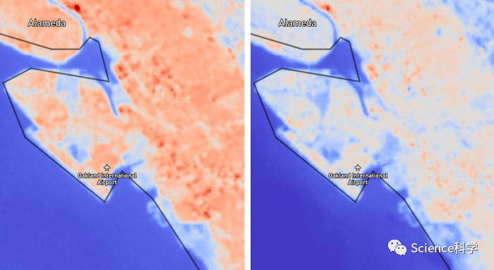 NASA通过使用2018年4月的数据然后将其跟今年4月进行比较的结果显示,同样是旧金山湾区和周边地区的热岛效应出现了大幅下降。根据NASA的描述,热岛效应指的是城市地区的气温明显高于邻近的农村地区的现象。很明显,大流行、交通和人类活动的减少在很大程度上帮助降低了这种影响。