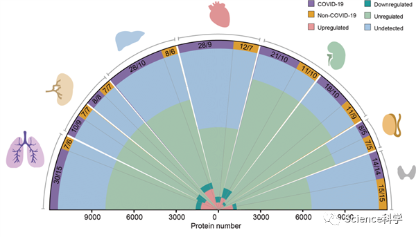 其中,肝脏里改变的蛋白质数量最多,达到了1970个。这意味着,新冠肺炎死亡患者的肝脏也受到了较大的损伤。