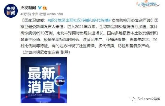 国内多地报告本土散发病例和聚集性疫情,疫情呈现持续时间长、涉及范围广、传播速度快、患者年龄大、农村比例高等特征,有的地方出现了社区传播、多代传播,防控形势复杂严峻。