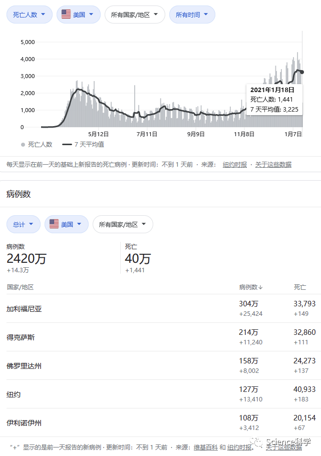 美国新冠肺炎死亡人数超40万 确诊人数超2400万