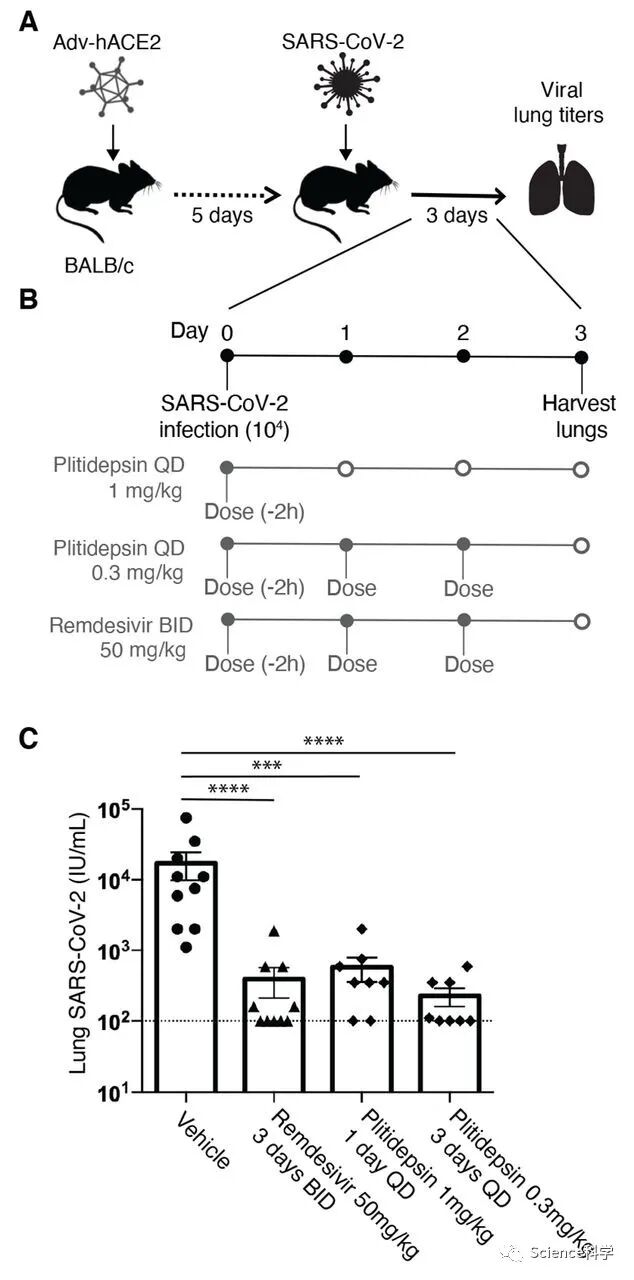 科学家们使用极低浓度的药物在由人类和猴子组织开发的肺细胞中杀死病毒。然后,他们用新冠病毒感染小鼠,并用plitidepsin治疗它们,发现这种药物可以清除它们体内的病毒。Plitidepsin并没有像瑞德西韦或其他药物和疫苗那样直接攻击病毒。而是阻断了病毒在细胞内的一种特殊蛋白(eEF1A)的活性,没有这种蛋白,病毒就无法复制。完整的研究报告发表在《科学》杂志上。