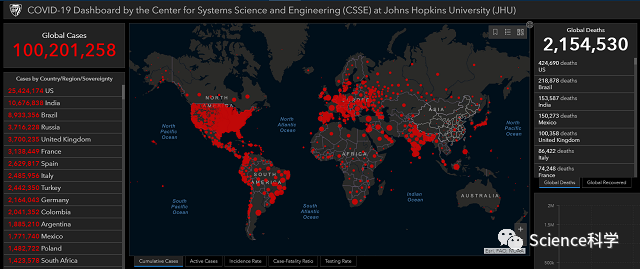 另据美国约翰斯·霍普金斯大学(JHU)统计,截至北京时间1月27日,全球新冠肺炎确诊病例累计超1亿例,其中死亡病例超过215万。美国新冠肺炎感染数位居榜首,累计确诊超2542万例,死亡42万例,每13和美国人就有一例感染或曾经感染新冠肺炎。