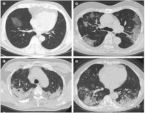 作者们的实际经验得出,新冠肺炎的影像学特征是多样的,从表面正常到弥漫性均有。此外,在疾病发展过程中的不同阶段会获得不同的影像学结果。作者们提及,在最初的新冠肺炎患者中,从刚发病到发展为急性呼吸窘迫综合征(ARDS)最短仅为9天。因此,及早识别这些患者非常关键。