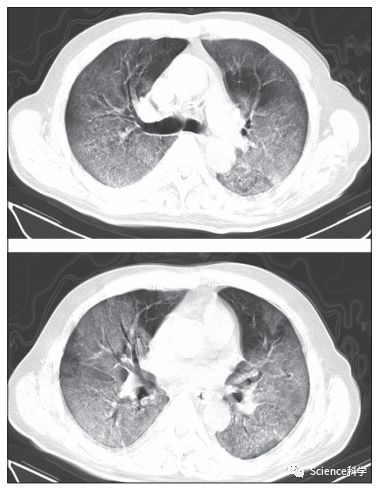 论文指出,新冠肺炎患者的胸部 CT 会显示肺浸润性病变,无症状感染者也会表现出胸部 CT 成像异常——在发病 1-3 周内,病变迅速从单侧、局灶性病变进展为双肺弥漫性磨玻璃影,后期合并实变。