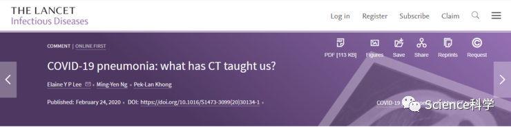 2 月 24 日当天,香港大学李嘉诚医学院放射科 Elaine Y P Lee 团队也在《柳叶刀·传染病》(The Lancet Infectious Diseases)发表了名为《新冠肺炎:CT 告诉我们什么?》的文章。