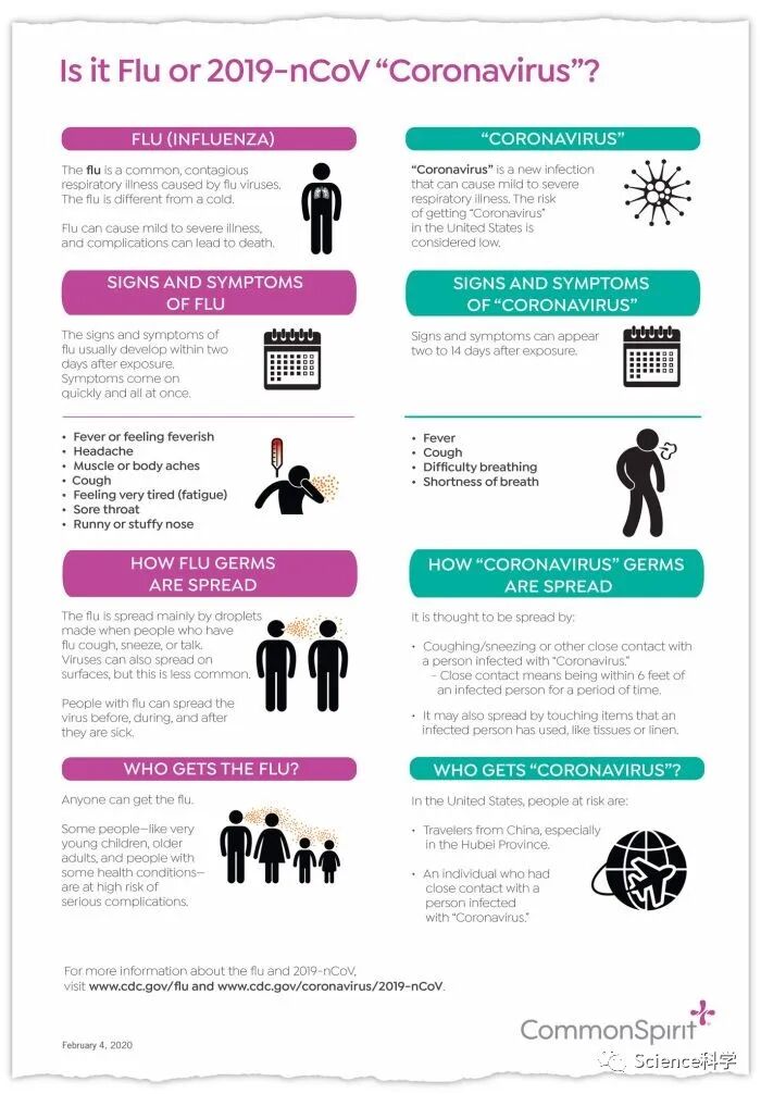 第六,病亡率不同。虽然还需要一段时间才能确定新冠肺炎的病亡率,但目前数据表明,新冠肺炎病亡率大概在 3% 至 4%,而季节性流感病亡率通常远低于 0.1%。