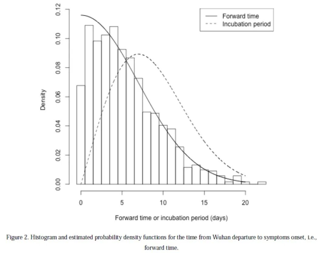 为了使用更新过程正确地模拟潜伏期,研究人员建立了两个重要假设:一是更新过程已达到平衡状态;二是分析中包含的病例都是在武汉感染,并在武汉以外地区出现症状。
