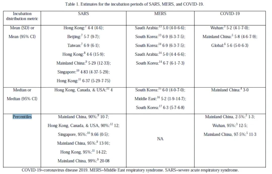 一是在此前基于291位患者的确切暴露日期(截至2020年1月29日)、国家卫健委高级别专家组组长、中国工程院院士钟南山团队等进行的研究“中国2019新型冠状病毒疾病的临床特征”中,得出的中位潜伏期为4天(四分位距,2-7),第一四分位数为2天,第三四分位数为7天。