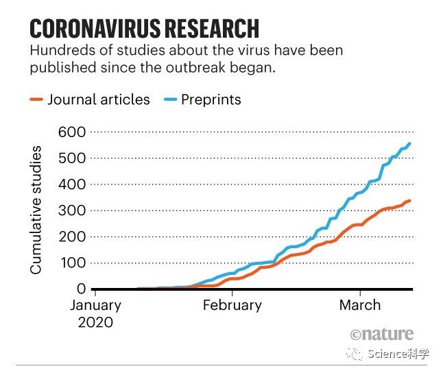 此次疫情的爆发引发了对冠状病毒及其引发的疾病的大量研究。为了估计研究活动的规模,《自然》杂志搜索了bioRxiv、medRxiv、ChemRxiv和ChinaXiv服务器上的“新型冠状病毒”、“ncov”、“covid19”和“SARS-CoV-2”等术语的研究,并汇编了世界卫生组织和谷歌学者列出的出版物。截至3月12日,约有900篇关于冠状病毒的论文、预印本和初步报告。