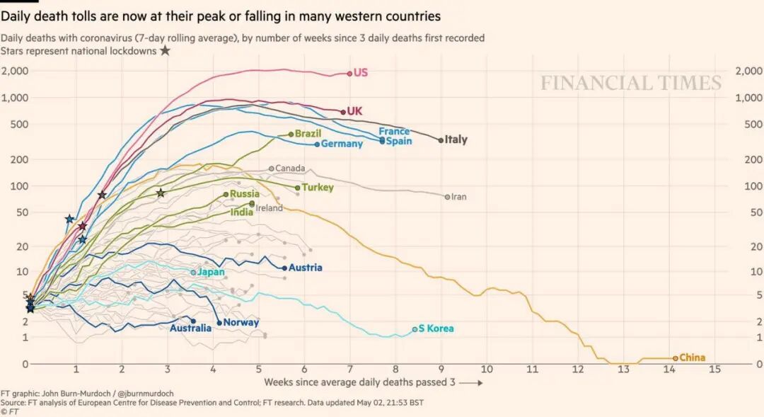全球已确诊新冠肺炎人数已超过370万,与10天前相比增加了80多万人。死亡人数达到26411人。目前,俄罗斯、巴西和印度每日死亡人数持续上升,英国呈下降趋势。4月24日,美国单日新增确诊病例数达到历史最高点约3.6万人,目前,美国疫情仍处于稳定高水平状态,美国新冠肺炎确诊人数约占全球1/3,死亡人数约占1/4,病亡人数已经超过越战。