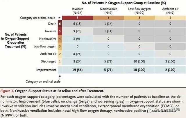 另外,接受治疗的53名患者中有7名在完成瑞德西韦治疗后死亡,其中包括6名接受有创通气的患者和1名接受无创氧气支持的患者。