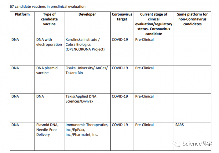 世卫组织的表格列出了所有70种COVID-19候选药物,并详细介绍了它们所处的阶段、疫苗的类型、开发商和使用的平台。其中许多疫苗将很快进入临床试验。仅辉瑞公司最近就表示,其计划在多达四种候选疫苗上进行研究,尽管表中只列出了其中一种--这是一种类似Moderna 的mRNA疫苗。辉瑞公司还表示,它愿意为其他候选者提供生产线,以备监管机构选择它们,而它们需要额外的制造力量。