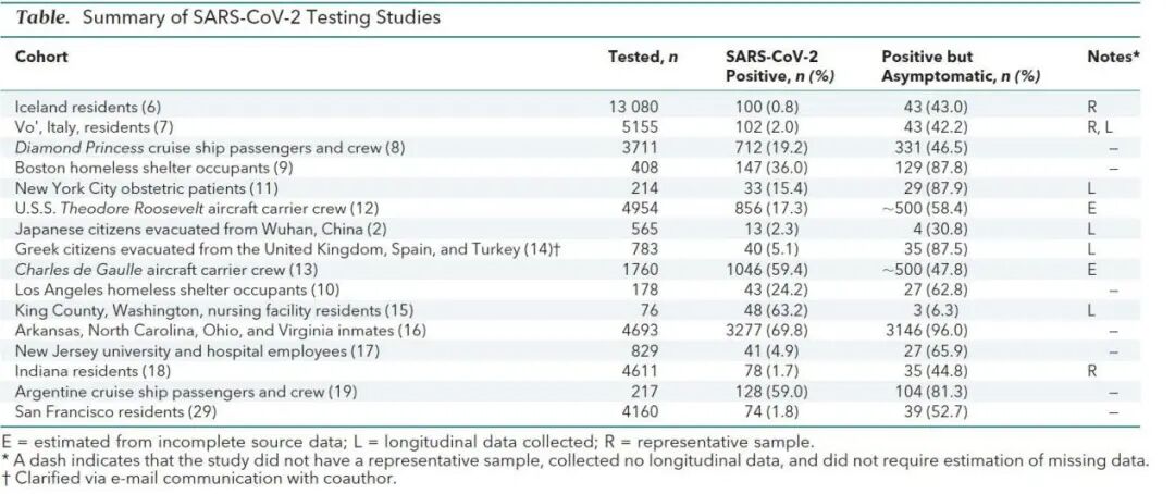 Prevalence of Asymptomatic SARS-CoV-2 Infection,A Narrative Review,Daniel P. Oran, AM, Eric J. Topol, MD,https://doi.org/10.7326/M20-3012