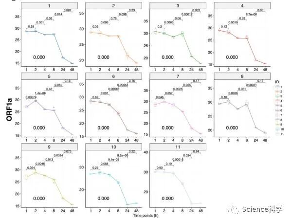简要来说,所有病毒分离株样本感染后1、2、4小时的Ct值保持平稳,仅有小的波动。在这些较早的时间点上,病毒粒子结合入侵细胞,病毒复制在这个阶段很少发生。