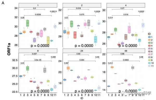 他们使用针对ORF1a、E和N基因的特异性实时转录聚合酶链反应(RT-PCR)来检测新冠病毒的存在。循环阈值Ct用于量化病毒载量,较低的值表示较高的病毒载量。由于这三个基因的结果高度一致,他们只讨论ORF1a基因的结果。