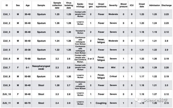 本研究中涉及的11例患者的样本收集于国内疫情暴发的早期阶段,时间为2020年1月22日至2020年2月4日。