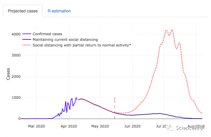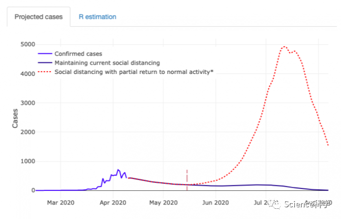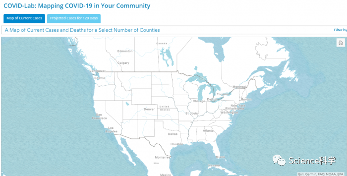 这个工具被称为"COVID-Lab: Mapping COVID-19 in Your Community"。用户首先会看到一张美国地图,然后可以按州选择,再选择县级地区。构建这个工具的研究人员在建模时使用的是一个任意的日期,即5月15日,作为开始放松隔离措施的起点。在这一天--同样是为了建模的目的--他们想象着如果允许该地区的活动恢复到正常的50%,可能会发生什么。"瞬时传染数(R)是使用每天新病例的发生率来估计的,同时包括社会疏远,人口密度,以及之前14天的综合温度和湿度滞后的影响,"是该网站如何解释其方法。"每个县的影响都是按人口人口统计学标准化的。"