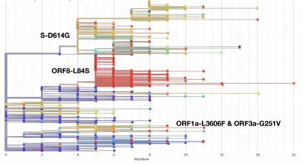 研究人员观察了刺突蛋白(S蛋白)的6种不同突变,包括2种不同的SNV导致相同的错义突变。因此,这项提供的直接证据表明,SARS-CoV-2已经获得突变,且能够大幅度改变其致病性。