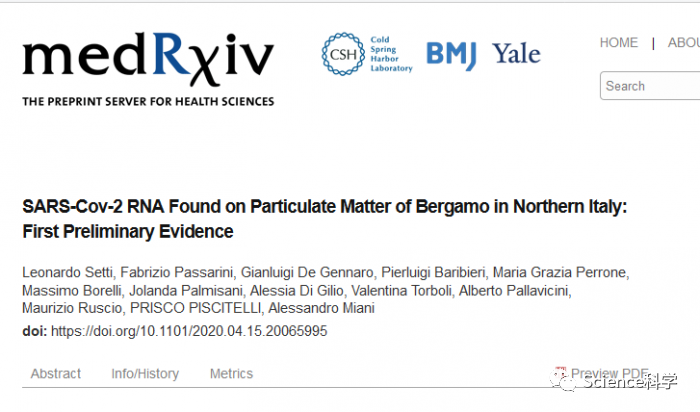 目前科研人员发现新冠病毒可以和空气中的污染颗粒结合[PDF],目前意大利科学家正在北部重灾区贝加莫周围的的空气,他们从贝加莫的一个城市和一个工业基地收集了空气,并在多个样本中发现了COVID-19的特异性基因。该研究的一个早期版本尚未经过同行评审,已经发表在medRxiv上。