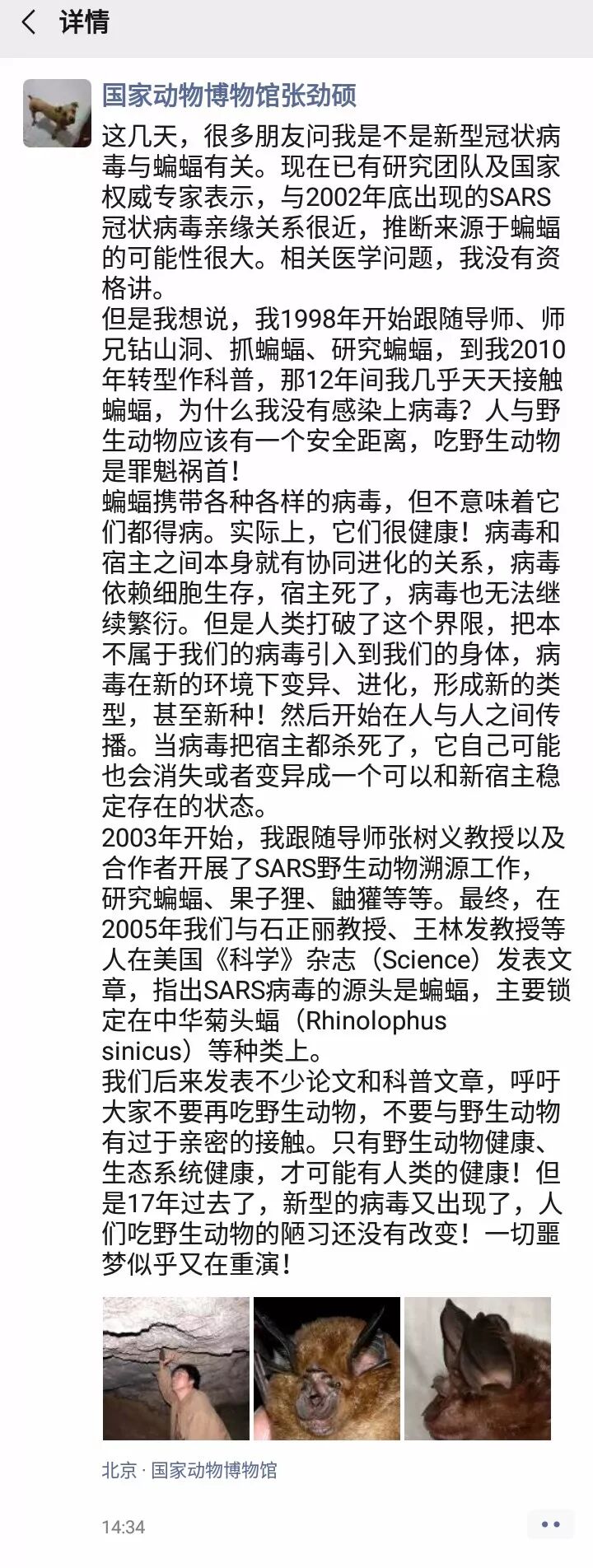 问:假设是蝙蝠是源头,那么如何传染人类的?