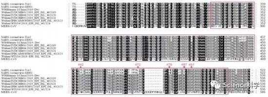 虽然新型冠状病毒的S-蛋白RBD区与SARS病毒的RBD区同源性比较高,但是已知SARS病毒S-蛋白与ACE2相互作用的5个关键氨基酸,在新型冠状病毒中有4个发生了改变。