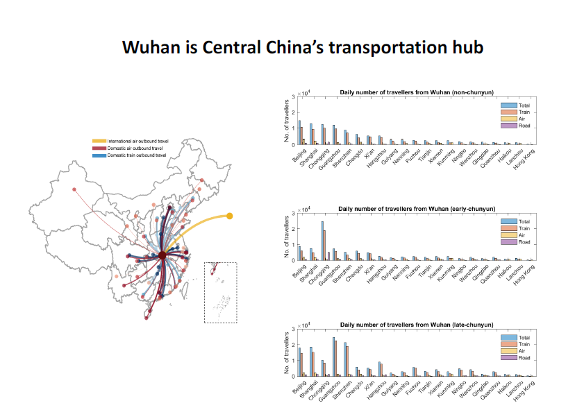 “九省通衢”之称的武汉是全国交通大动脉,春运各时期发送旅客量(图:CFR Laurie Garrett)