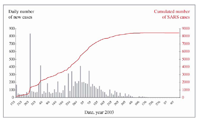2003年SARS发病流行图(Source: WHO)