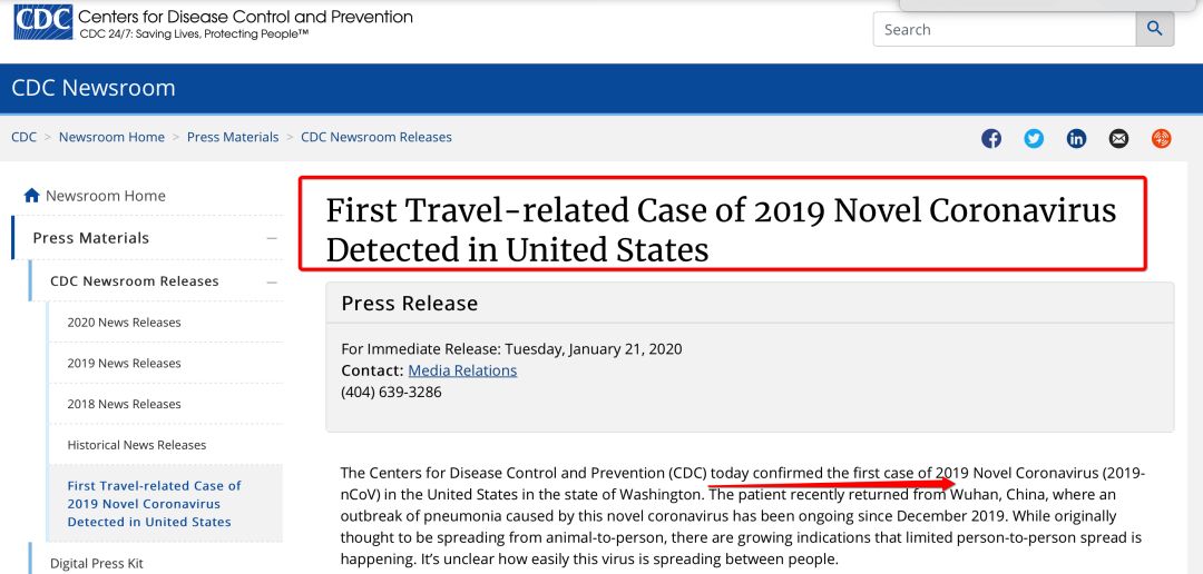 美国疾病预防控制中心(CDC)官方确认首例病例