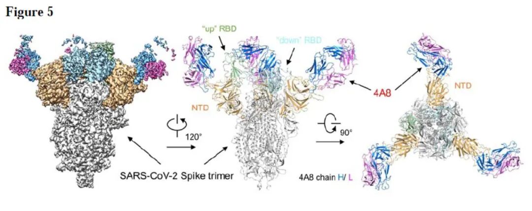 新冠病毒S蛋白与单克隆抗体4A8复合物的冷冻电镜结构图