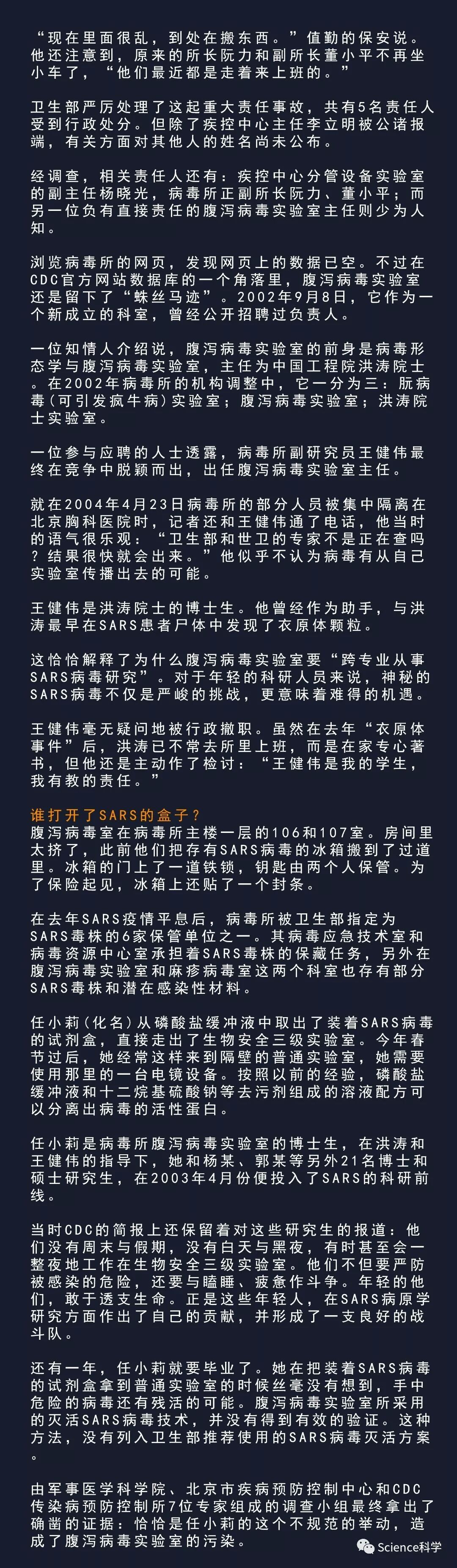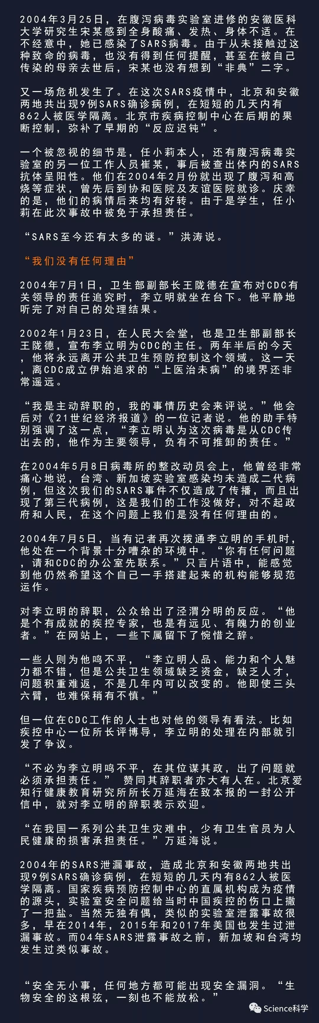 然而一些人和一些地方,在官僚主义和病毒研究方面,并没有总结出应有的经验和教训。这也许恰恰给2004年中国疾病预防控制中心(以下简称中国疾控中心)的SARS病毒实验室泄漏事件埋下了伏笔。