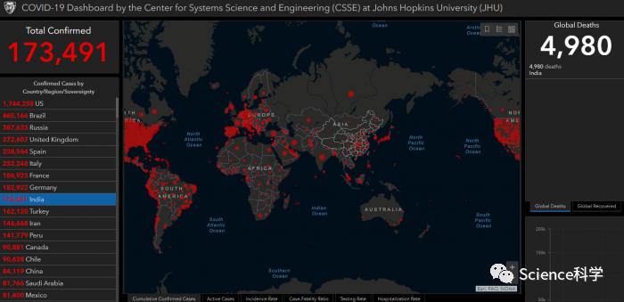 根据约翰斯·霍普金斯大学的数据,截至发稿时,印度已经出现了173491例新冠确诊病例,同时有4980例死亡病例。据《纽约时报》报道,孟买的一些医院里挤满了病人,以至于有些病人睡在硬纸板箱上。事实上,专家们开始担心,如果印度的疫情不能得到控制,人们担心印度的病例数可能会在几周内接近百万。