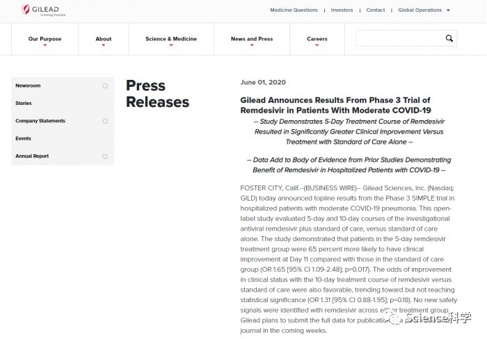 几周后,另一项研究报告进一步证实了这些发现,也让人明白了瑞德西韦并不是我们期待已久的COVID-19“神药”。瑞德西韦的制造商-美国吉利德科学公司在周一公布了一项额外的研究,称瑞德西韦在COVID-19治疗中发挥作用。然而,吉利德的3期研究评估了治疗时间的长短,其结论可能只适用于特定的患者子集。