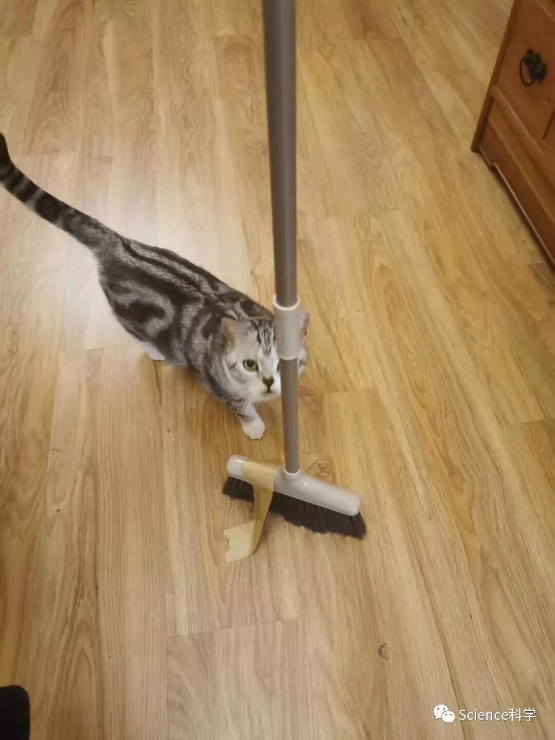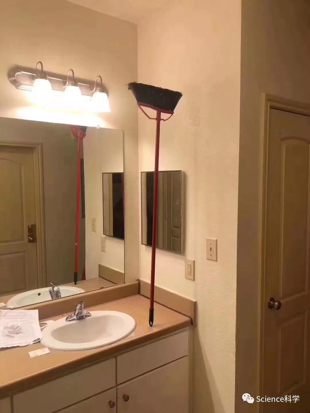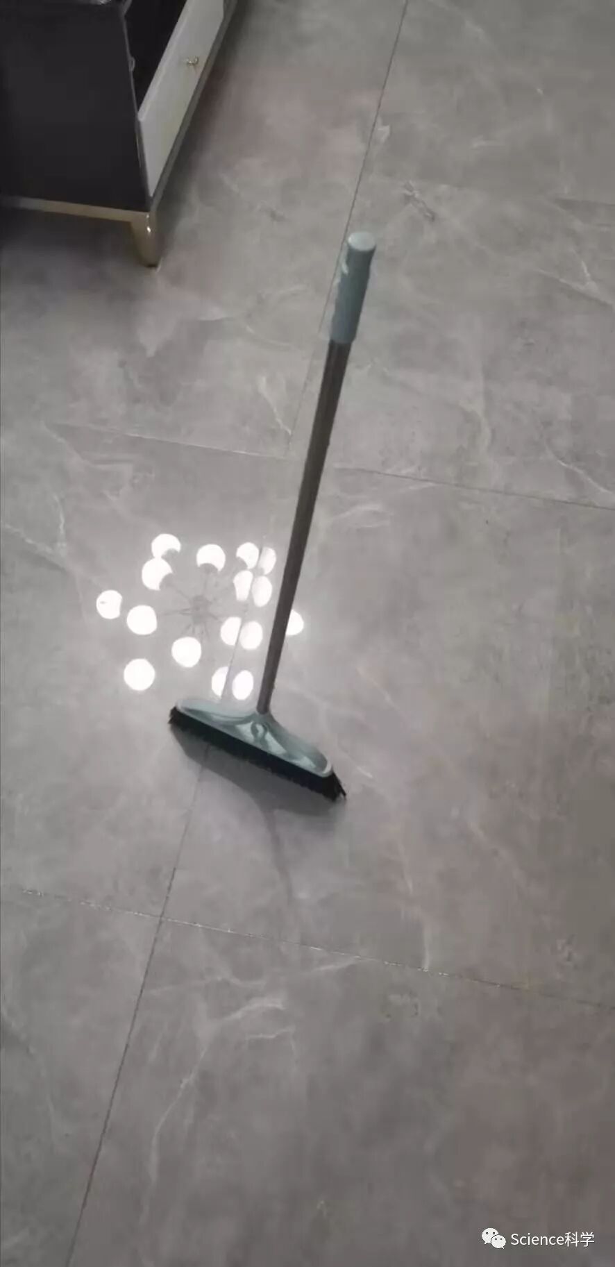 实际上,扫把每天都能立起来。扫把能站起来的原理很简单,扫把重心低,大部分重量都集中在扫把头上,只要扫把够直,并放在平整的表面上,把硬硬的刷毛张开,扫把就能立起来了,原理就跟三脚架能站起来一样,没什么特别的。