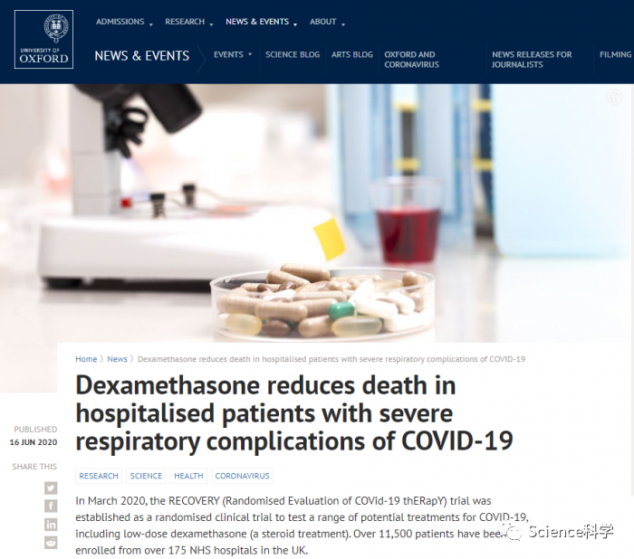 “自从6个月前COVID-19出现以来,人们一直在寻找能够提高生存率的治疗方法,特别是在病情严重的患者中。”首席研究员之一、牛津大学纳菲尔德医学院人口健康系医学和流行病学教授Martin Landray在谈到这项研究时说。“RECOVERY试验的这些初步结果非常明确--地塞米松可以降低严重呼吸道并发症患者的死亡风险。”