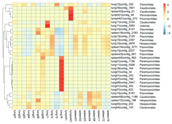 研究人员通过宏基因组测序分析发现:其中68个重叠群与已知病毒具有高度的序列相似性,马来亚穿山甲中携带主要有仙台病毒和多种冠状病毒等优势病毒,研究人员从11只死亡的马来亚穿山甲中收集了21份具有明显症状的肺,其中有2只穿山甲中检测到了多种冠状病毒,系统发育分析发现,检测到的冠状病毒具有高度的物种多样性,与四个冠状病毒属关系复杂,且以SARS-CoV分布最为广泛。