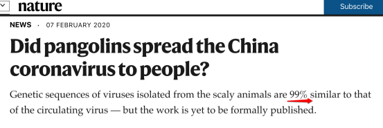 中国学者发布该消息后,Nature在线发布文章“Didpangolins spread the China coronavirus to people?”,对华南农业大学的推测发表观点:已有数据显示穿山甲携带的病毒与2019-nCoV密切相关,此前也曾有研究人员指出,冠状病毒可能是穿山甲的一种死亡原因,而2019-nCoV和穿山甲的冠状病毒利用具有类似分子结构的受体来感染细胞。