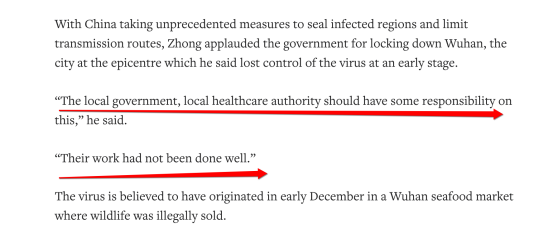钟南山院士直言武汉市地方政府和卫生主管部门没能在疫情发生早期采取足够的措施遏止疫情蔓延,应该负重要责任。如果能够更好地协同协作,我们就能够更早地发现"人传人"。
