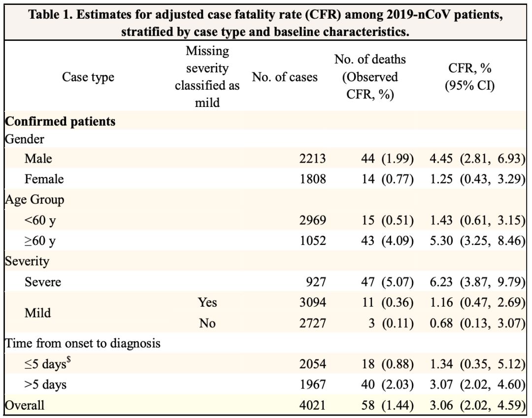 2019-nCoV患者中调整后的病死率(CFR)的估算