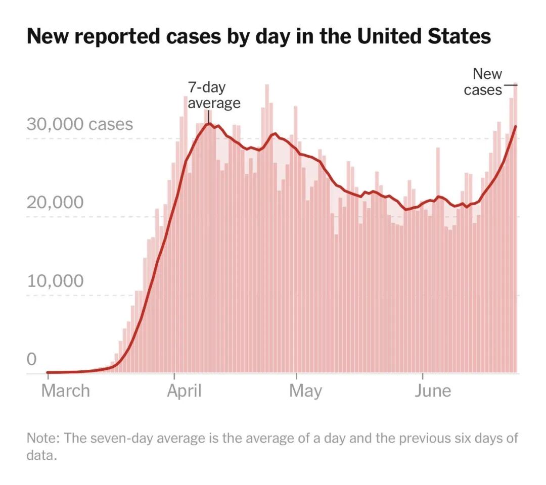 特别是美国超过30州出现疫情反弹,其中加州、得州、佛罗里达、俄克拉荷马等多州均已出现自疫情3月暴发以来的日增确诊新高记录。随着疫情反弹形势日益严峻,多州开始考虑暂停重启。