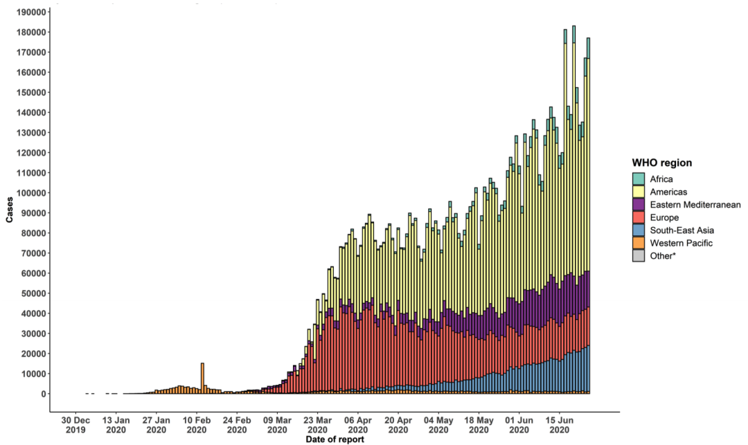 12月30日到6月26日的疫情增长情况,WHO